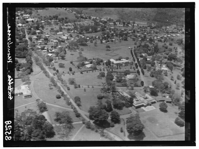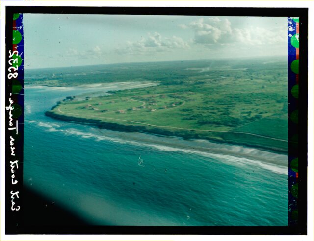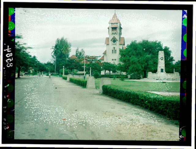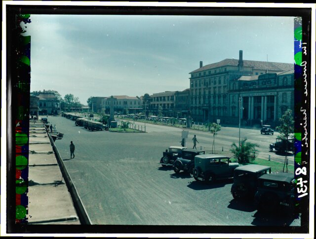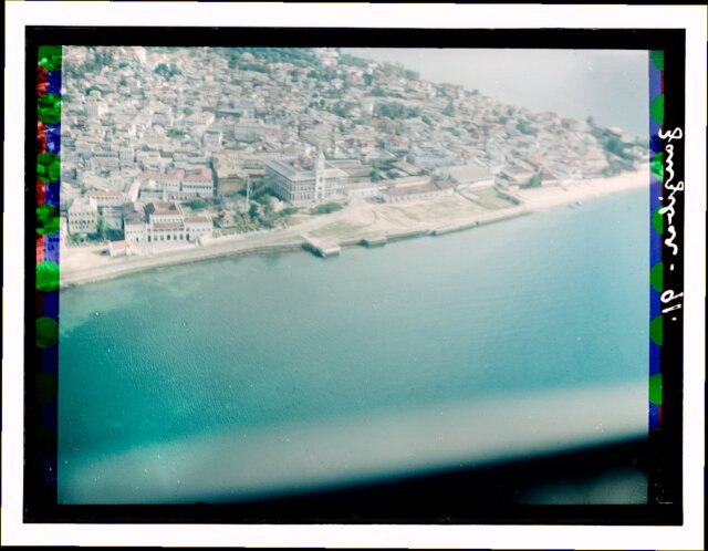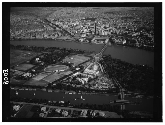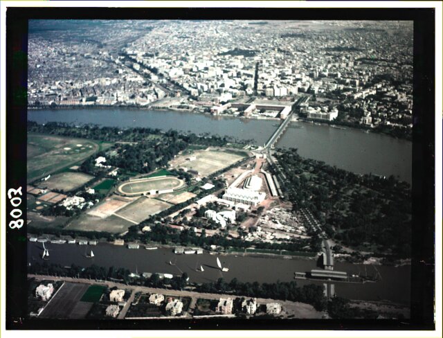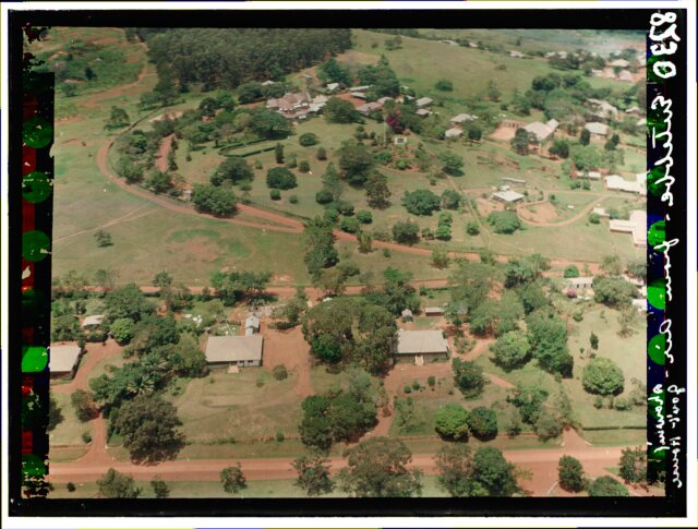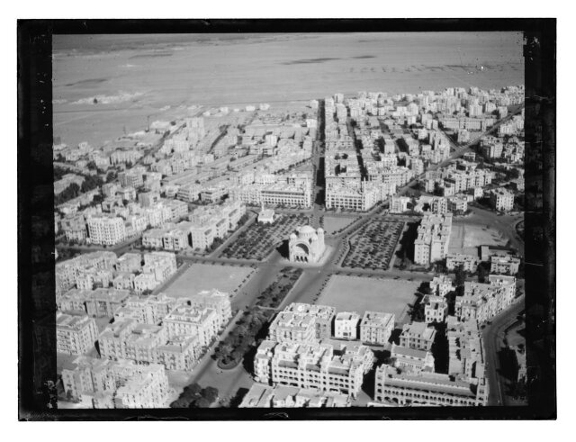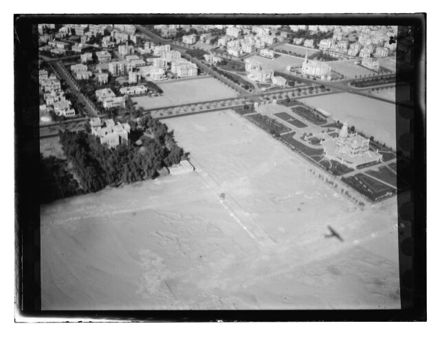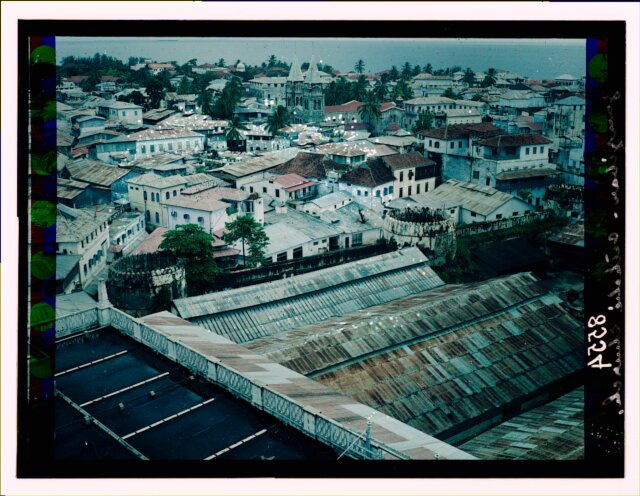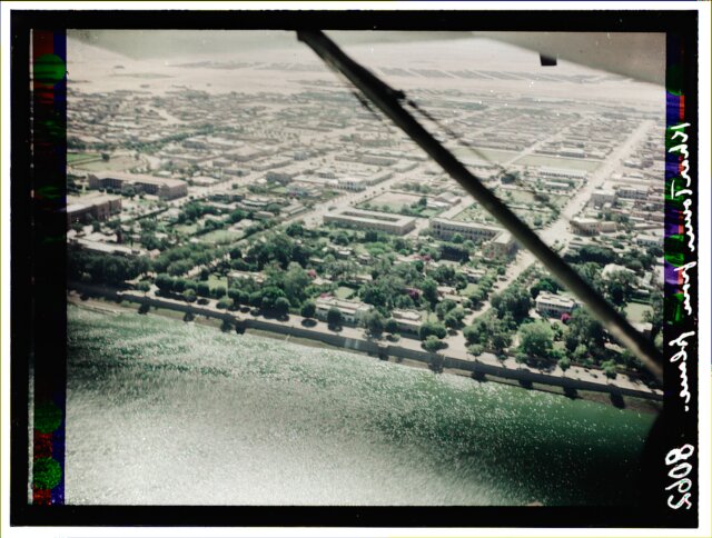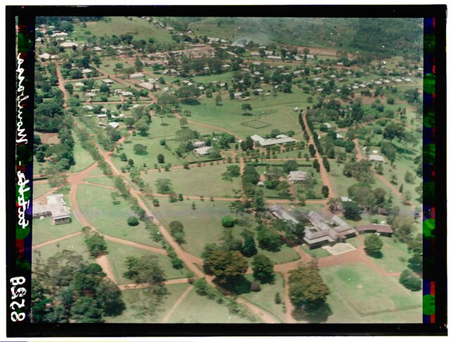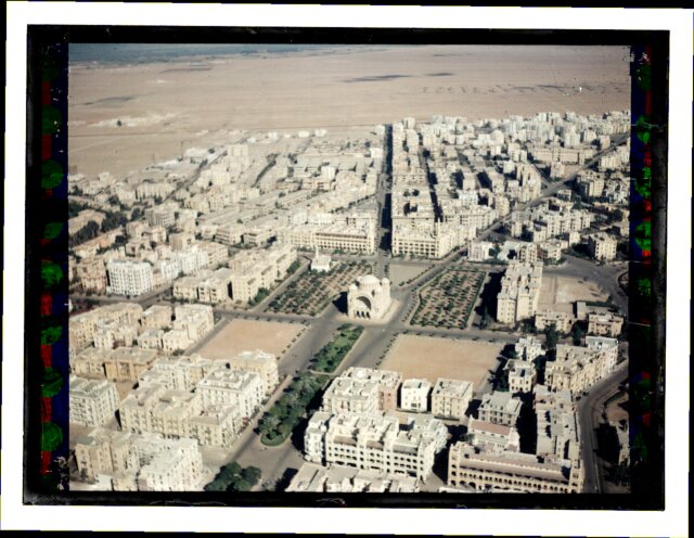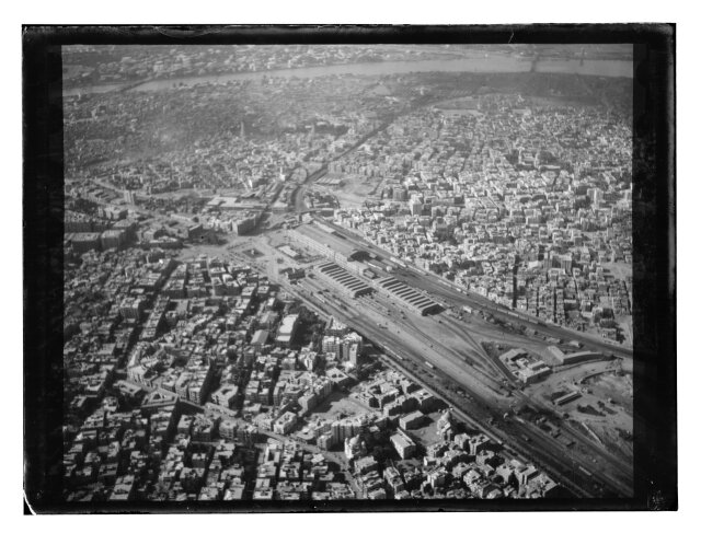 [Aerial view of African city showing railroad station?]