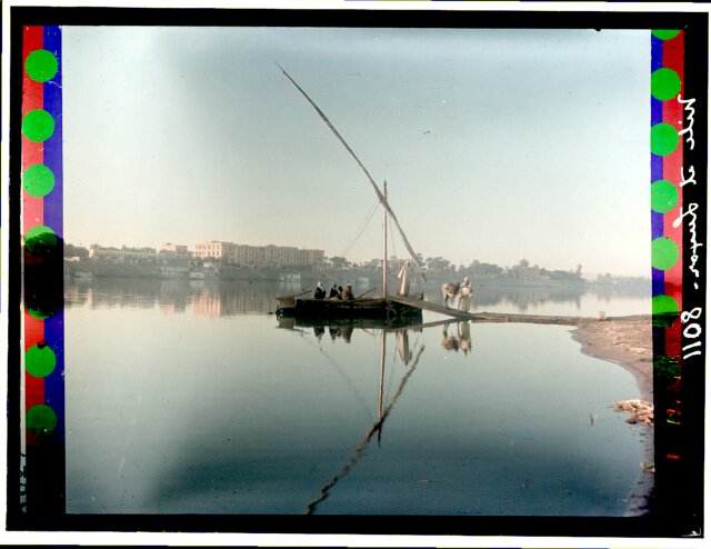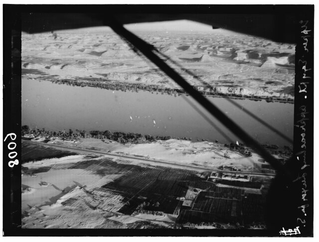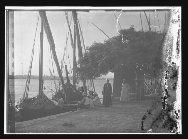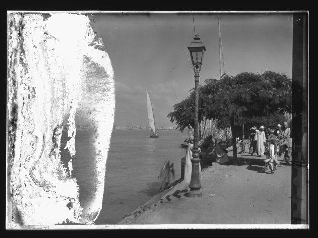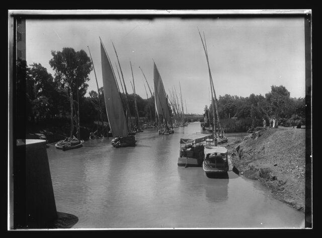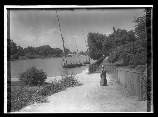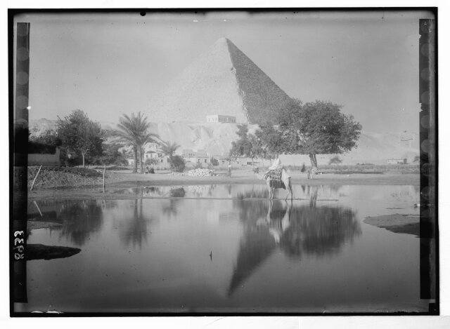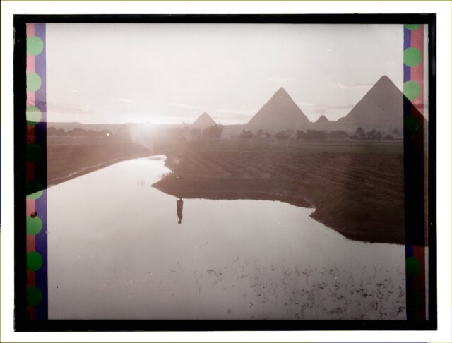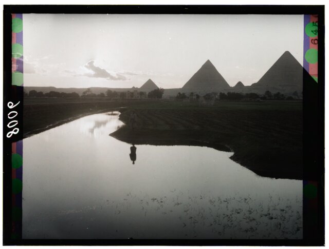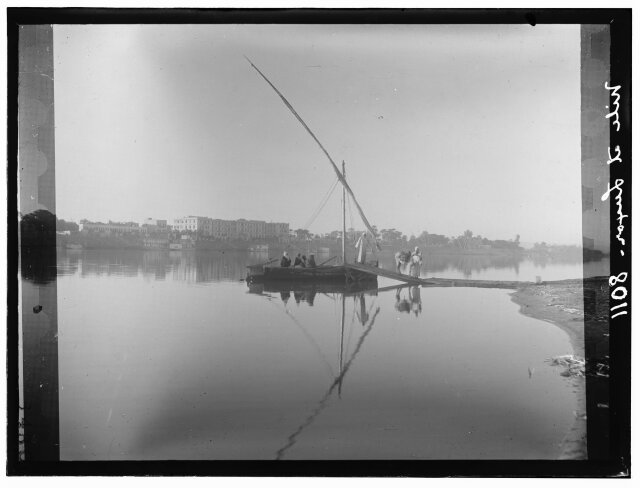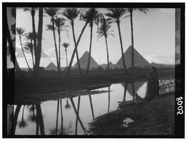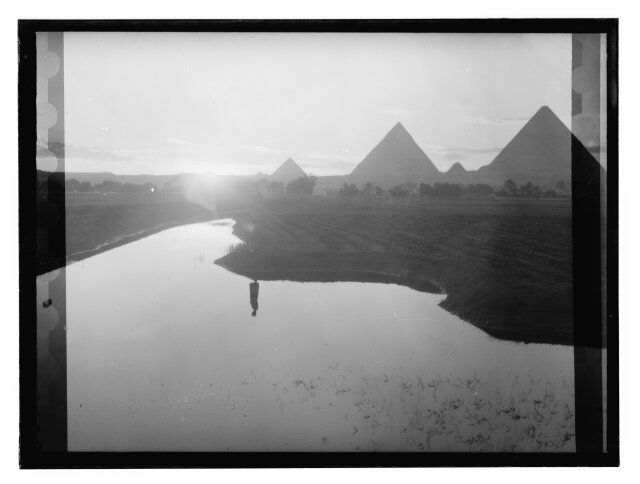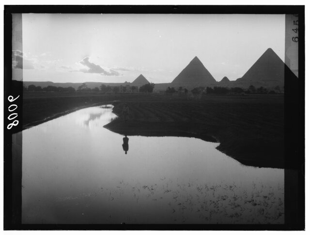 [Egypt. Cairo. Evening scene of the Nile overflow near pyramids]