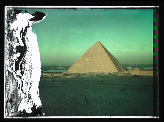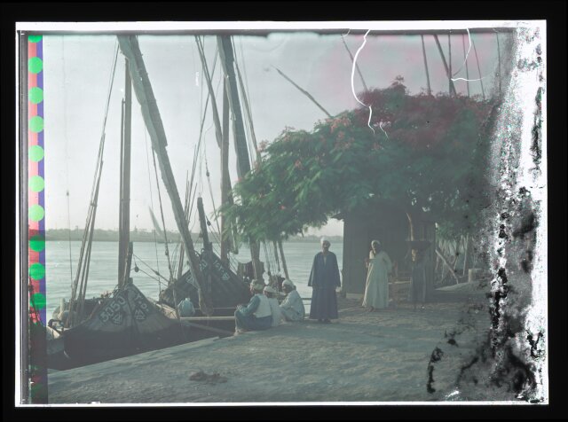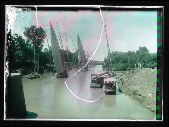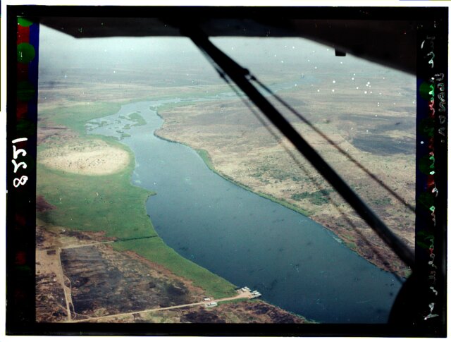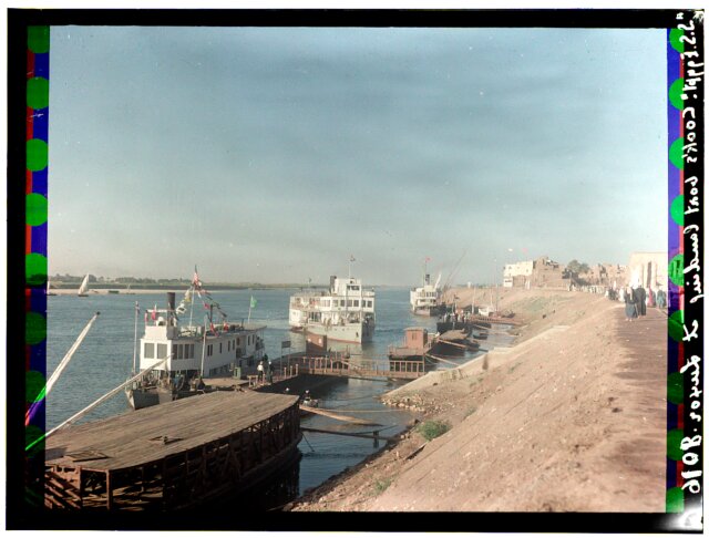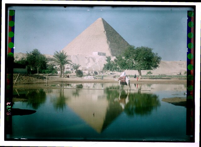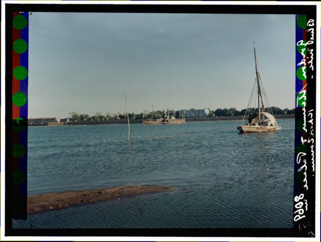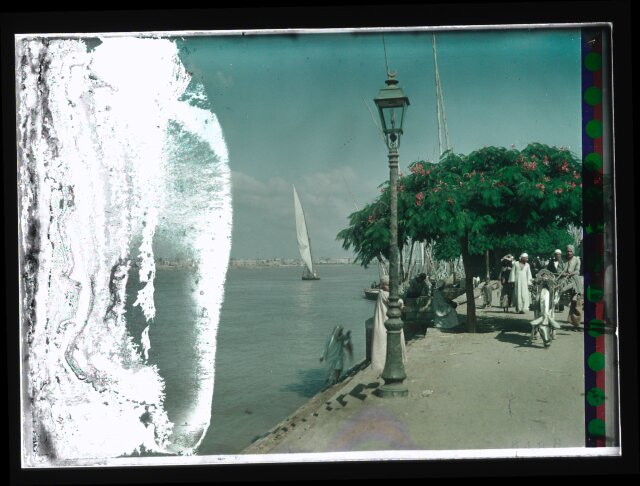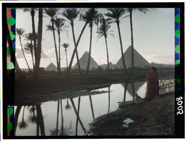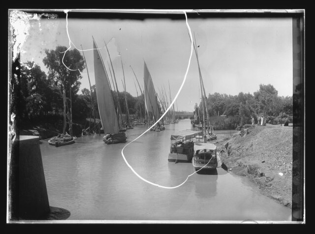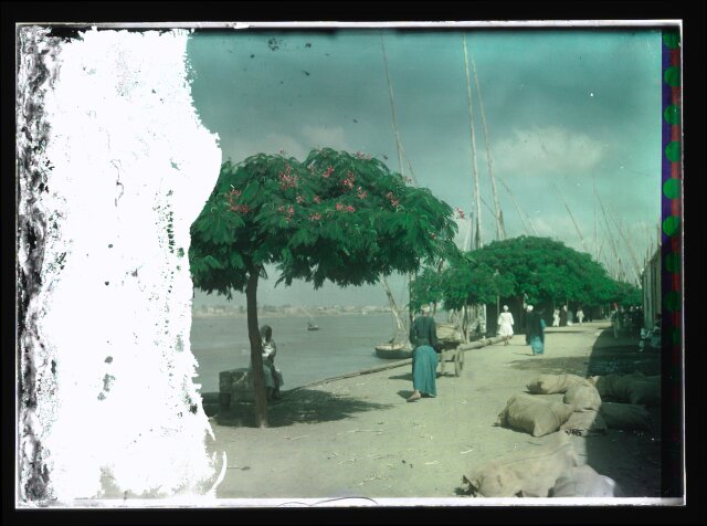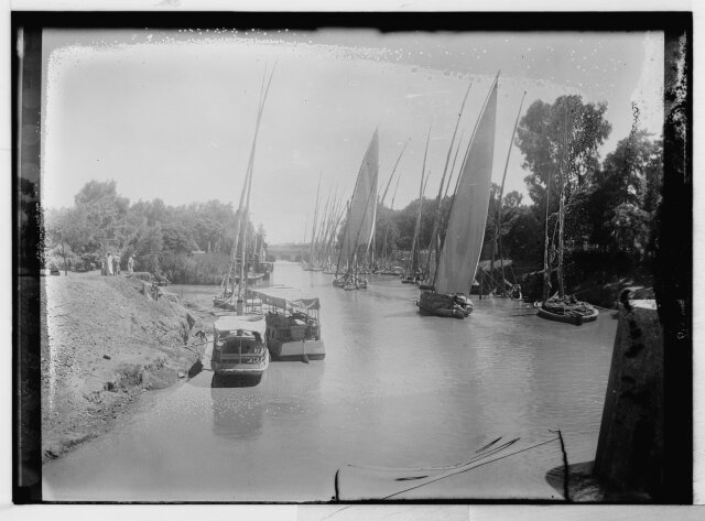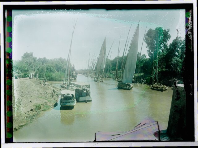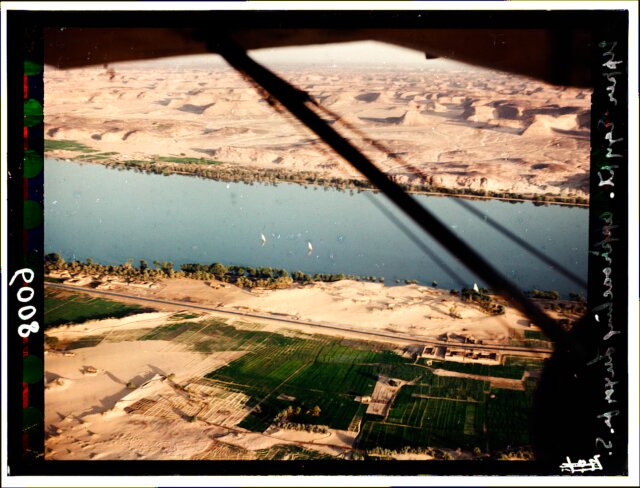 [Egypt. Cairo. Evening scene of the Nile overflow near pyramids]