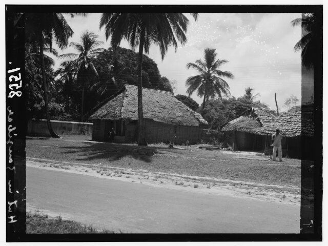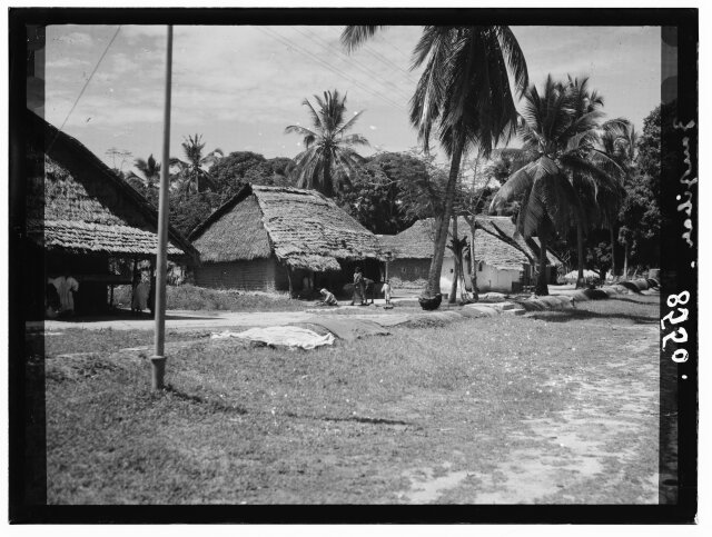 Native homes shut in by circle of reed walls called Bomas [Kisumu, Kenya]