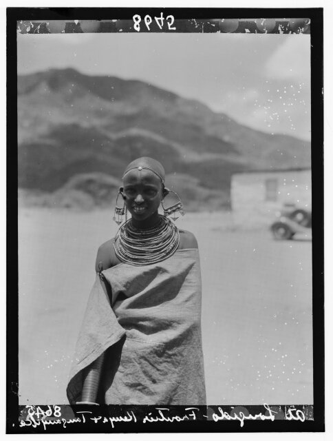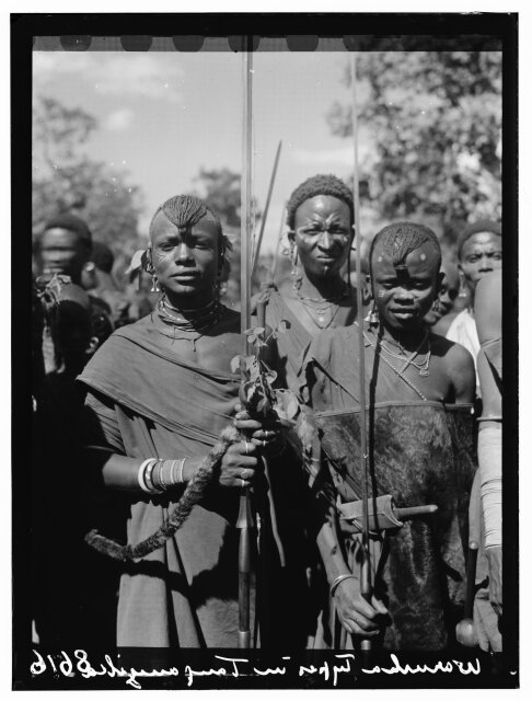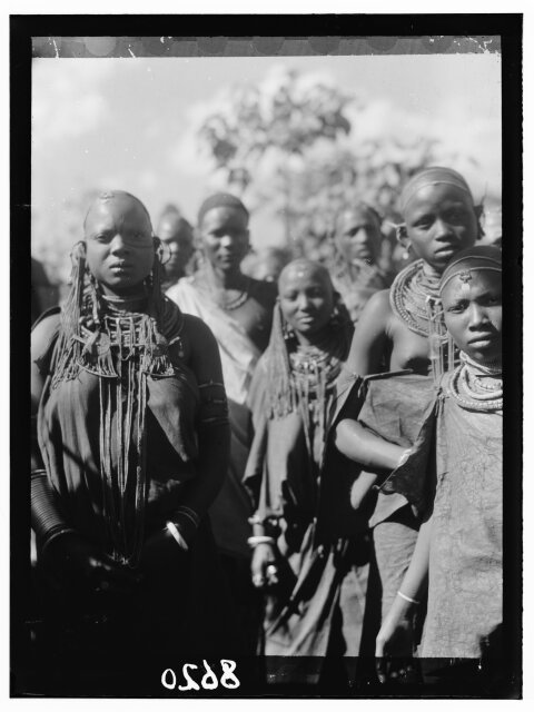 [Tanganyika. En route to Longido. Longido girls with large ear ornaments]