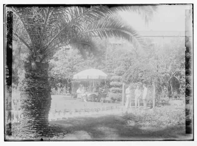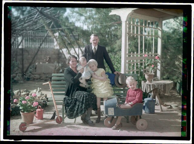 [Eric and Edith Matson with their children, (left to right) Margaret, Anne, and David, in the garden of their home, Jerusalem]