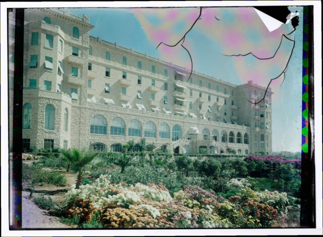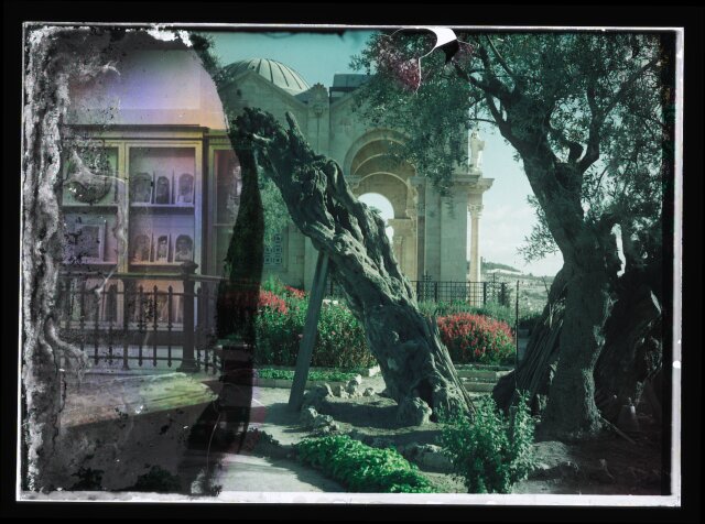 [Temple area. Tower of Antonia seen through colonnade]