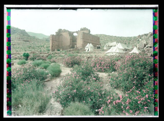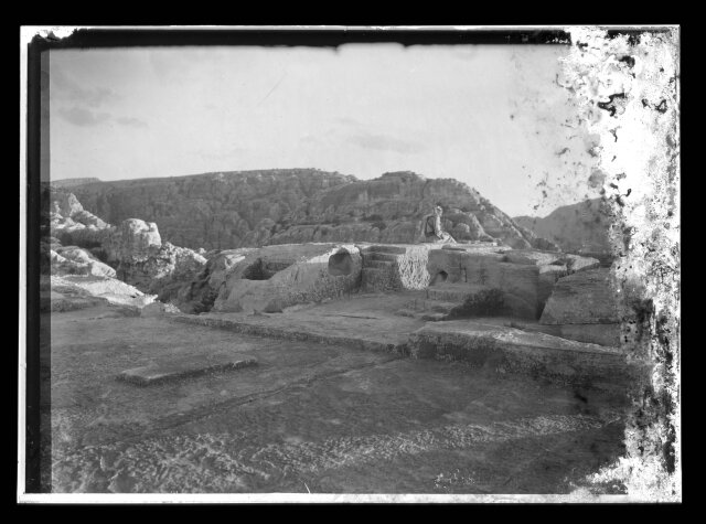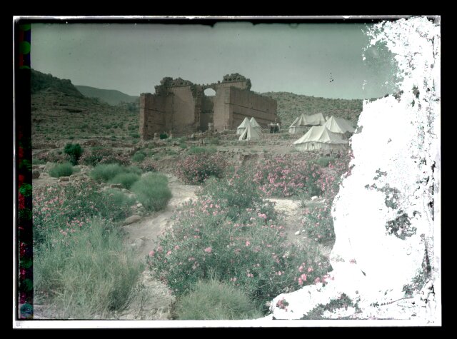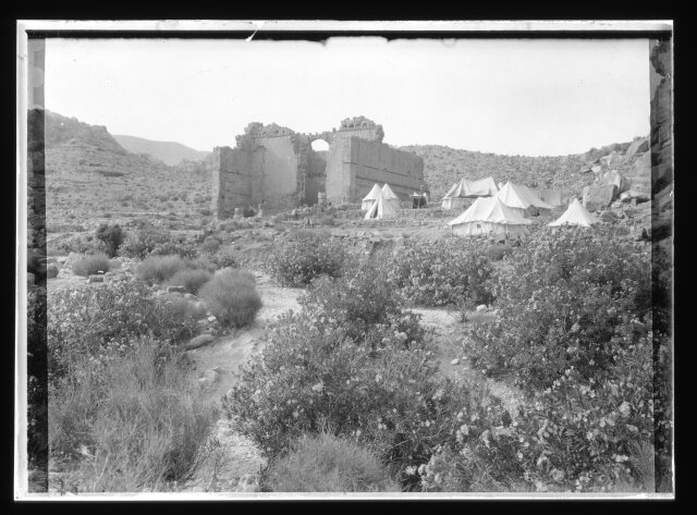 [El-Habis area. Qasr Bint Far'on. Cook's camp at Petra, near remains of Roman Temple]