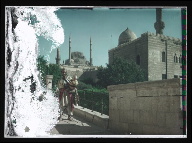 [Man in front of mosque, Cairo?]